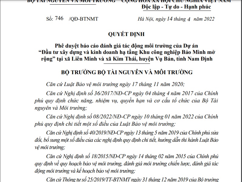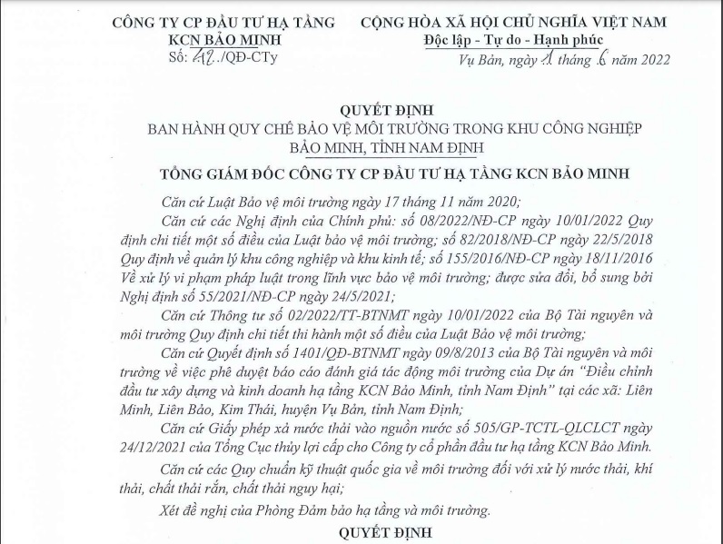 [embeddoc url=”https://baominhip.com/wp-content/uploads/2022/06/Quyet-dinh-ban-hanh-quy-che-BVMT-KCN-Bao-Minh.pdf”][embeddoc url=”https://baominhip.com/wp-content/uploads/2022/06/Quy-che-BVMT-KCN-Bao-Minh-1.pdf”]